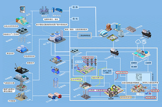 建立冷/熱/水/汽/電/污/廢等資源的多能互補系統(tǒng),實現(xiàn)產(chǎn)業(yè)園區(qū)一體化集成功能系統(tǒng),通過對能源轉(zhuǎn)換、能源應(yīng)用、余能回收、廢棄物處理各環(huán)節(jié)的整體設(shè)計、統(tǒng)一規(guī)劃和分級利用,實現(xiàn)從-271℃—200℃范圍內(nèi)的能源階梯級利用、余能綜合利用、能源高效利用,大幅度提高能源的總體效率,以智慧生態(tài)平臺優(yōu)勢,實現(xiàn)設(shè)備、功能、資源的多重集約,為客戶提供高附加值的解決方案。